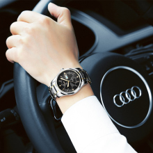 冠琴正品手表男石英表精钢带男表全自动夜光防水男腕表多功能时尚