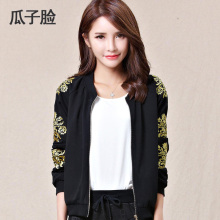 瓜子脸2017春重工刺绣长袖宽松夹克开衫大码宽松棒球服卫衣外套女