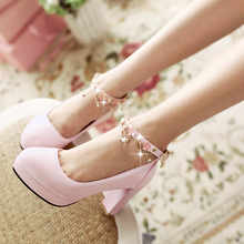 2017春季新款甜美公主鞋蝴蝶结高跟鞋圆头粗跟单鞋女鞋浅口防水台