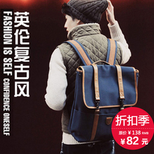 城中至潮 韩版男双肩包英伦休闲学院风背包复古包书包韩国旅行包