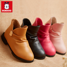 巴布豆家族童鞋女童靴子儿童真皮短靴马丁靴2017秋冬新款宝宝单靴