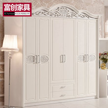 衣柜 家具法式衣柜 欧式衣柜 田园板木六门组合大衣橱象牙白储物