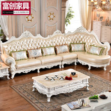 富创欧式真皮沙发美式转角沙发组合实木沙发法式大小户型太子沙发