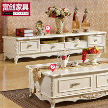富创 欧式电视柜 茶几 组合套装 小户型电视柜 圆角茶几 简约地柜