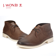 劲王.正品牛皮耐磨休闲皮鞋圆头胶粘鞋套筒高帮鞋新款男鞋 鞋子