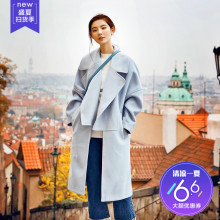 反季清仓欧美茧型厚羊绒毛呢子大衣中长款淡蓝色羊外套女韩国大衣