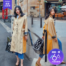 AW2017春夏新款欧美风衣女装超长韩版双排扣薄款军绿色外套中长款
