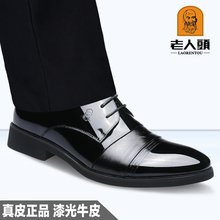 老人头男鞋秋冬尖头内增高商务正装皮鞋男真皮系带英伦漆皮婚鞋