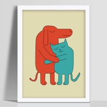 动物相亲相爱个性时尚实木有框装饰画挂画客厅卧室走廊儿童房壁画