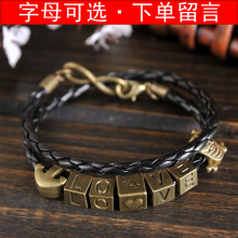DIY手工定制字母手链 韩版潮男手绳 时尚手镯饰品情侣手饰手串 女
