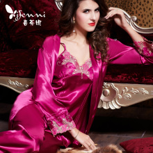 春秋性感蕾丝品牌丝绸睡袍睡衣女夏娃诱惑吊带睡裙家居服两件套装