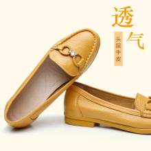 春季平底妈妈单鞋平跟真皮大码中老年软底防滑豆豆鞋中年女鞋春秋