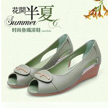 中年女凉鞋夏妈妈中跟坡跟鱼嘴鞋中老年凉鞋2017新款真皮软底防滑