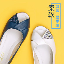 夏季妈妈鞋鱼嘴凉鞋中老年中年真皮舒适软底平跟镂空民族风女鞋