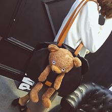双肩背包女潮女毛绒小熊背包休闲旅行包包包2016新款双肩背包