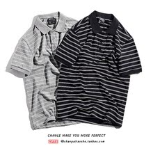 日系潮牌余文乐条纹POLO衫夏季新款复古学院风翻领T恤男士打底衫