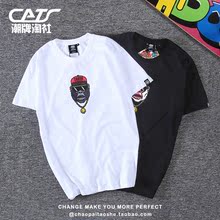 潮牌猿人猴土豪金链纯棉短袖男士余文乐港风休闲T恤卡通情侣潮tee