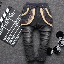 2016冬款新款儿童加绒牛仔裤男童个性铆钉棉裤女童长裤子中童全棉