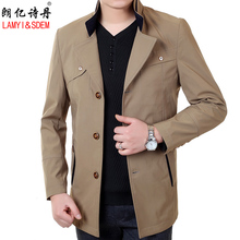 朗亿诗丹中年男士风衣新款春装商务中长款修身薄款大码外套夹克男