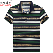 2017夏装新款男士短袖t恤中年男体恤翻领商务男装条纹T恤polo衫