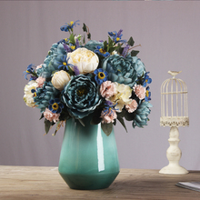 欧式牡丹高端韩式花艺套装餐桌摆件 客厅装饰假花仿真花盆栽摆设
