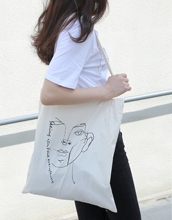 自制 休闲chic单肩抽象人脸素描印花系带帆布包安韩国ins帆布包包