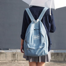 现货 原品生活 韩版纯色双肩包 休闲牛仔包旅行包 小清新电脑包