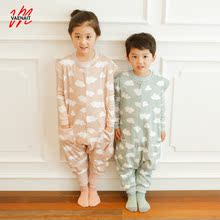 韩国春秋冬季婴幼儿童睡袋分腿式防踢被连体衣宝宝纯棉睡衣2-3岁