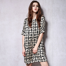 欧美女装精品顺纡真丝连衣裙桑蚕丝五分袖文艺民族风夏装2017新款