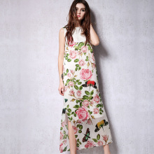 欧洲站女神波西米亚真丝连衣裙夏桑蚕丝圆领无袖背心长裙小资淑女