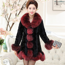 海宁2016冬新款狐狸毛领兔毛皮草中长款女外套修身特价清仓妈妈装