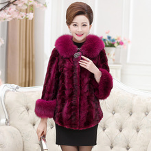 2016新款狐狸毛领獭兔毛绒中长款女士整皮中老年妈妈装年皮草外套