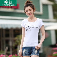 香虹2017新款女装短袖T恤女夏修身显瘦纯棉圆领印花体恤休闲半袖