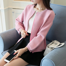 初秋女装外套短款时尚韩版灯笼袖拉链针织衫外搭宽松大码毛衣开衫