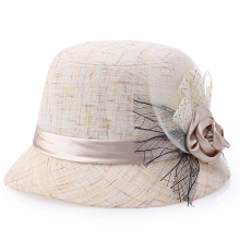 2016时尚亚麻花朵女礼帽 春夏季青中年妈妈盆帽沙滩帽时装女帽子