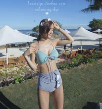 韩国新款 条纹分体比基尼 钢托聚拢 运动风温泉度假泳衣