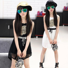 清仓不退换!女童装夏新款中大童背心裙涂鸦雪纺连衣裙韩版裙子