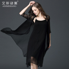 2017春夏新装真丝吊带背心女宽松打底衫中长款无袖背心裙小黑裙