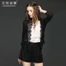 2017夏季百搭真丝小外套蕾丝披肩开衫短款防晒衣女短袖空调衫上衣