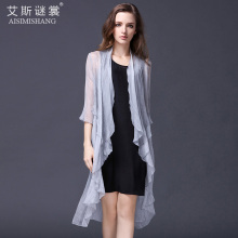 艾斯谜裳2017夏季新款真丝披肩外套防晒衣女中长款百搭空调衫风衣
