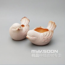 限量版 秋之恋曲情侣小鸟 手绘出口陶瓷花盆多肉植物肉肉花卉有孔