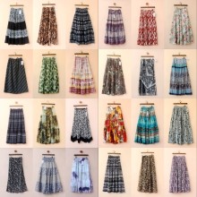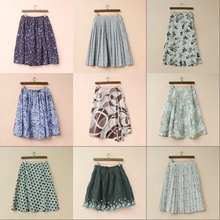 vintage复古着 雪纺纱料印花日系范长裙A字 棉麻百褶裙高腰半身裙