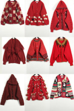 秋冬装孤品复古古着vintage红色系连帽小羊立体草莓花手工毛衣