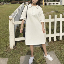 实拍 懒人百搭学院风宽松休闲Polo长款文艺小清新T恤连衣裙夏女