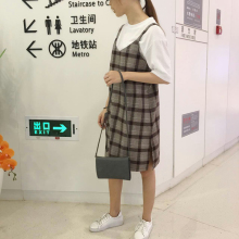 中长款格子吊带裙子夏季大码背带裙 裙子韩版潮女学生宽松ulzzang