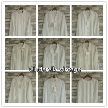 日系の春季雪纺品质老料 vintage古着森系蕾丝镂空刺绣木耳女衬衣