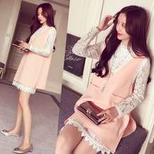 春秋季孕妇装新款韩版时尚气质蕾丝孕妇连衣裙+开叉背心裙两件套
