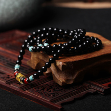 男士手链女款开光天然黑曜石多圈佛珠手链辟邪转运韩版情侣手串