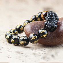 包邮 虎眼 黑曜石貔貅烫金六字真言玛瑙手串 男士手链玛瑙 佛珠