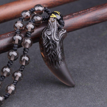 狼牙吊坠原创设计 男士冰种黑曜石吊坠冰发丝狼牙项坠女水晶饰品